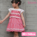 Souris(スーリー)のサニー チェック ワンピース ワンピ(レッド)。ビタミンカラーのチェック柄が、元気いっぱいの女の子をイメージさせます。フリルがたくさん施され、着るとふんわりしたシルエットになります。バックファスナーになっており、シルエットを崩さずに着れます。夏のお出かけ着にもおすすめです!
