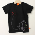 カエル君が海賊船に乗ったユニークなTシャツです。左肩にはスナップがついていて、脱ぎ着しやすくなっています。