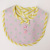 パステルの水玉の生地とストライプの縁取りがかわいいビブです。