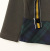 後ろ姿です。チャコール色から緑色のチェック生地に切替になっています。