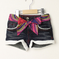 カラフルなステッチやスパンコール、刺繍がデザインされたおしゃれなショートデニム。