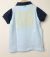 落ち着いた青のおしゃれなポロシャツ。背中につく「08」のゼッケンはブランド誕生年。